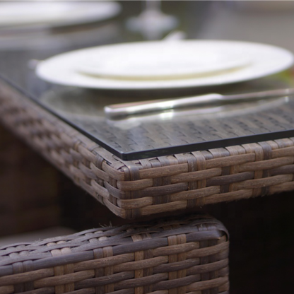 This premium rattan garden furniture is the perfect blend of comfort, style and luxury. This practical and unique dining set packs away into a neat cube, making it convenient and space friendly.